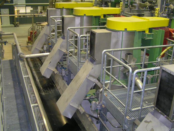 Noch nicht überholter CombiSorter Größe 12, der im Rahmen der Überholung entweder CSM12 oder CSM12B werden kann (CSM12 bis zu 75tato Zulauf, CSM12B bis 100tato Rejektzulauf). Das Unterteil wird mit wechselbaren Guss-Steinen ausgestattet.